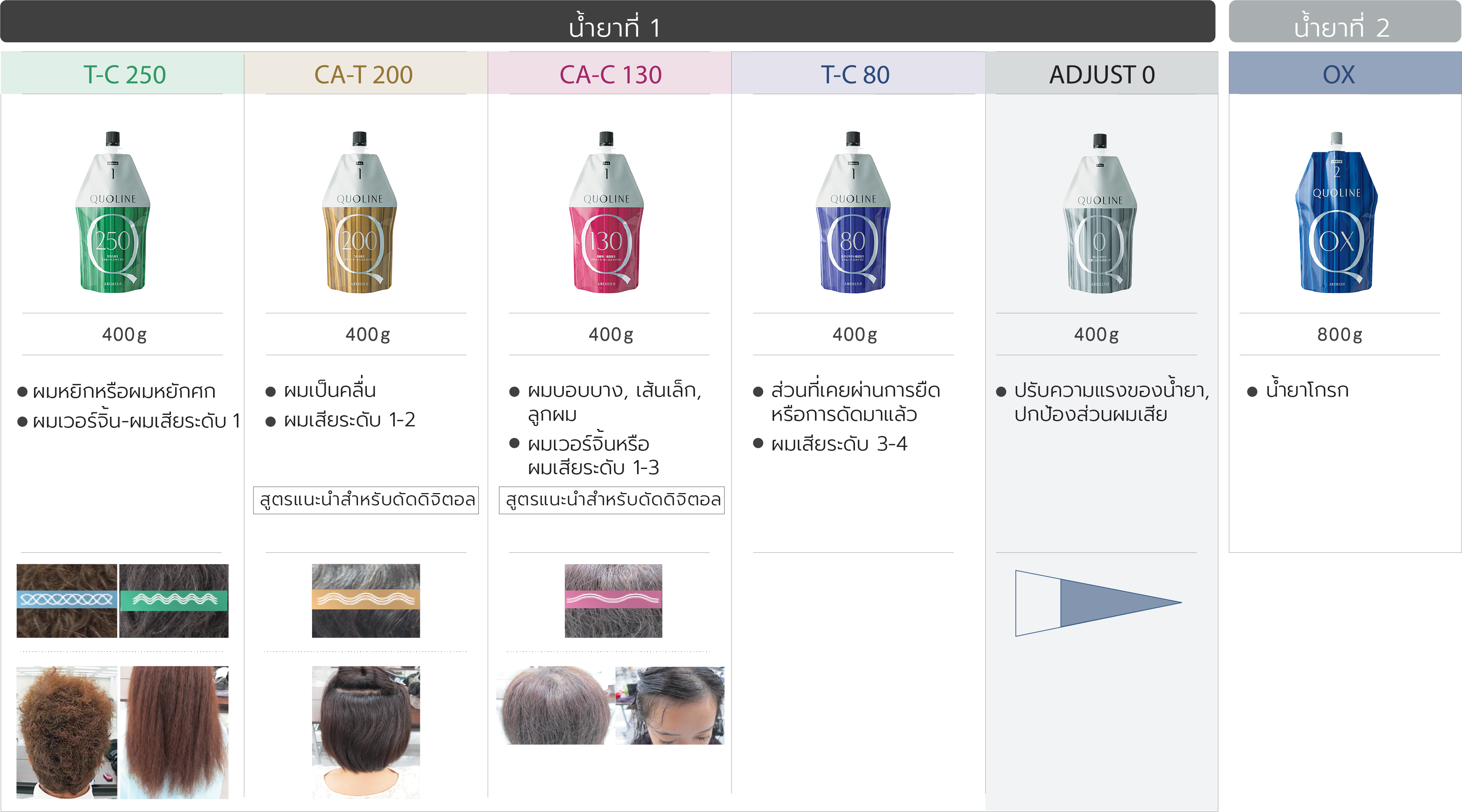 รวมถึงช่วยให้ซาลอนสามารถรับลูกค้าที่มีสภาพผมที่ปกติต้องปฏิเสธไม่รับทำให้ น้ำยา QUOLINE ตัวนี้ ถูกพัฒนาและทำขึ้นเพื่อให้รับลูกค้าที่มีระดับผมเสียได้มากกว่าปกติที่ทำได้